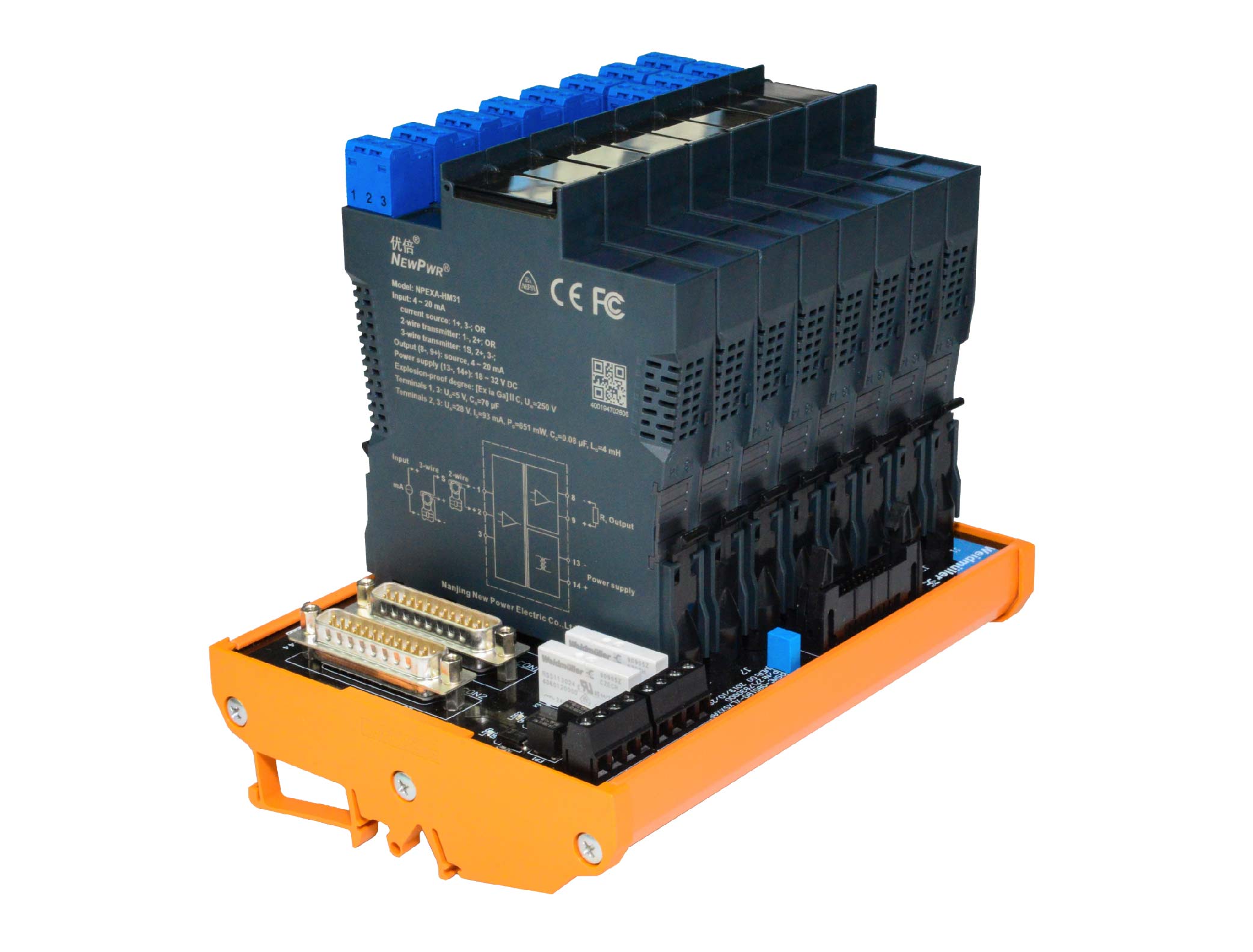 Temperature input isolated barrier, it converts the thermocouple signals from a hazardous area into 4~20mA signals to a safe area by isolation. It has external cold junction compensation terminals. It needs a backplane power supply. The input, output, and power supply are galvanically isolated from each other. The self-test function is also available on this device. Calibrate the apparatus or modify parameters by using a handheld programmer.