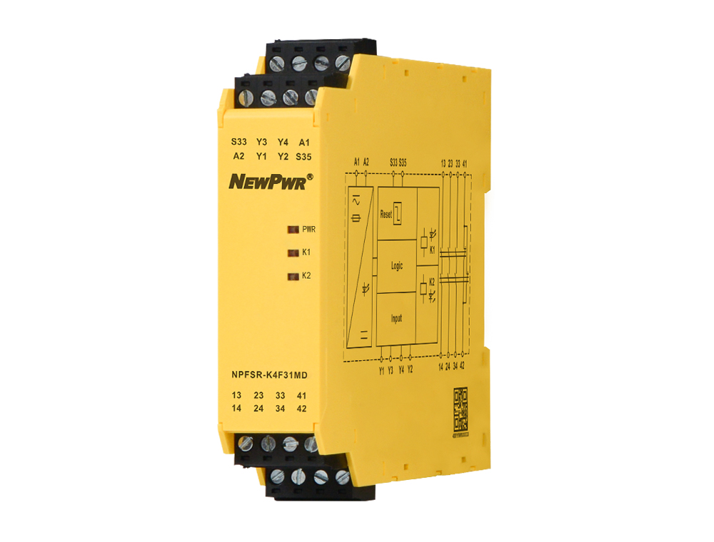 K series safety mat input safety relay is applicable to 4-wire NO contact safety mat input. When a certain weight is applied to the safety mat, the NO contact of the safety mat is closed, and the safety output contact of the control safety relay is open, so as to protect the operators in the dangerous area. Main features: 1oo2 architecture;With detection of input breakage;With monitored manual reset function;The safety function remains effective in the case of a component failure;The correct opening and closing of the safety function relays is tested automatically in each on-off cycle.
