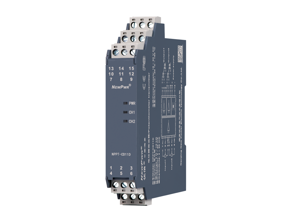 This potentiometer transmitter converts the 3-wire potentiometer signals to 4~20mA signals. It needs an independent power supply. The input, output, and power supply are galvanically isolated from each other. Calibrate the apparatus or modify parameters by using a handheld programmer.